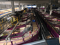 The clothing and shoes are packed and shipped here. Machines are sometimes required for packing and the goods are also dispatched via conveyor belts and various systems.